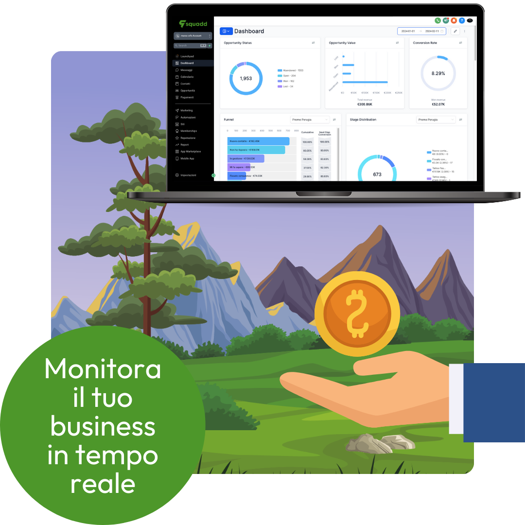 Squadd è nato per gli imprenditori che vogliono risparmiare tempo e soldi controllando tutto il proprio business in un unico posto e risparmiando tempo e soldi co un unico abbonamento mensile. Per sapere se puoi automatizzare il tuo business con Squadd, prenota ora una consulenza gratuita con un esperto.